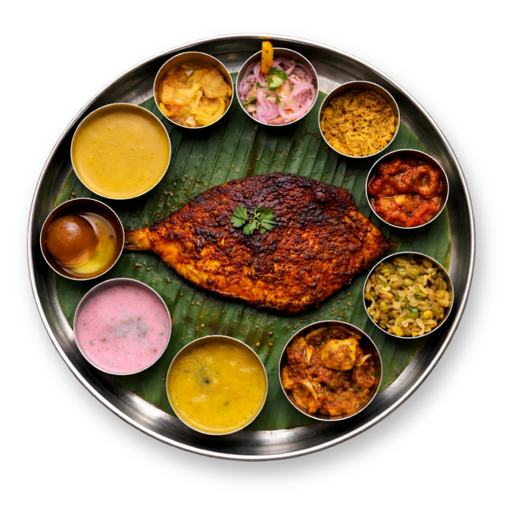Enjoy a wholesome thali experience with a perfect mix of coastal, chicken, and classic flavours, served fresh and satisfying.